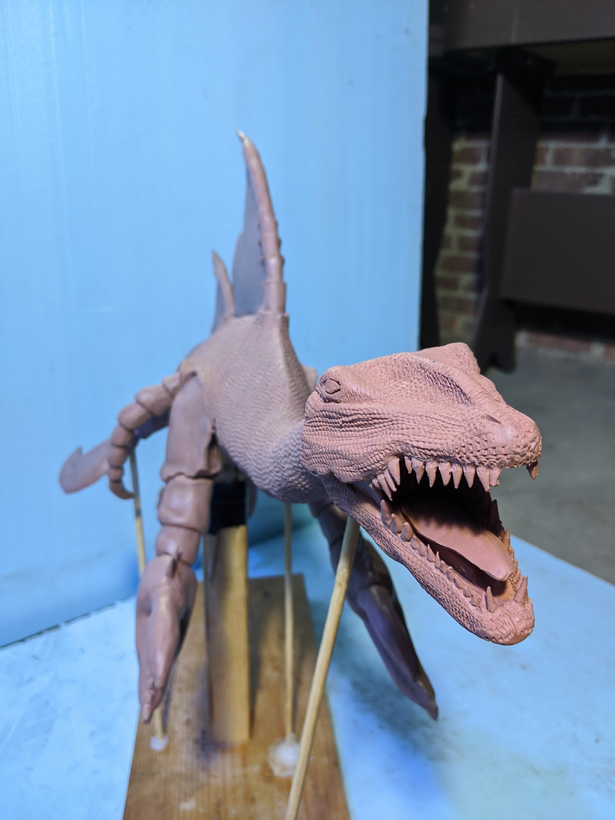 I chose aspects of animals from the Hudson region and grafted them together into something unique, while also adding my personal flair. The design includes features from the Eurypterus (NYS Fossil), phytosaur, Atlantic sturgeon, and more.